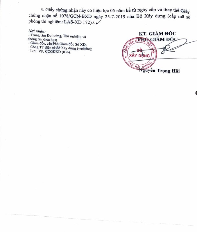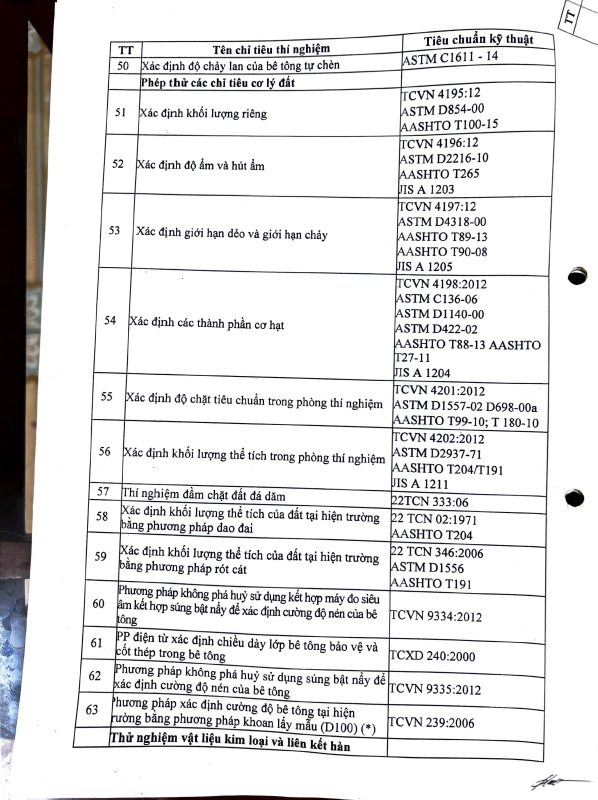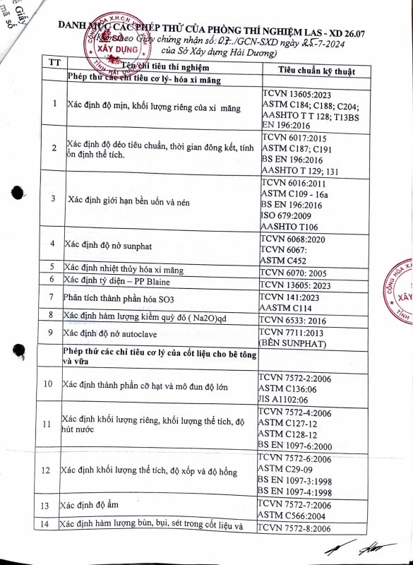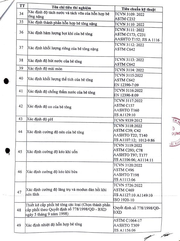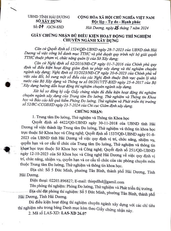 Giấy chứng nhận đủ điều kiện hoạt động thí nghiệm chuyên ngành xây dựng